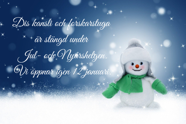 Kansliet och forskarstugan har stängt under jul- och nyårshelgen 22 december till och med 9 januari.