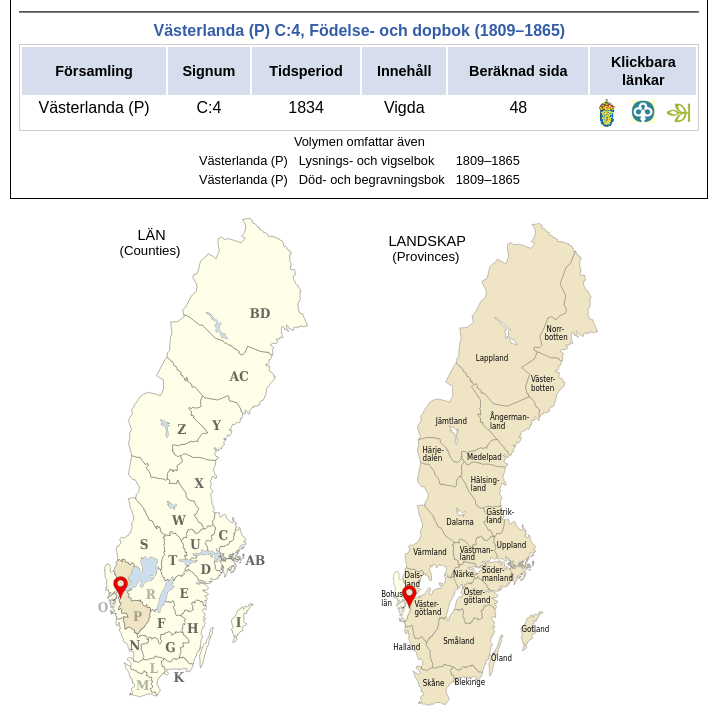 Du får alltså församlingens namn med länsbokstav, volymens signum, ungefär vilket eller vilka år som borde finns på det angivna uppslaget och vilken typ av uppgifter som längden innehåller.