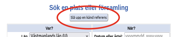 Ovanför sökformuläret på Dispos’ startsida, men under rubriken, finns en ljusblå knapp med texten ”Slå upp en känd referens”. Klicka på den, så kommer du till ett nytt sökformulär: